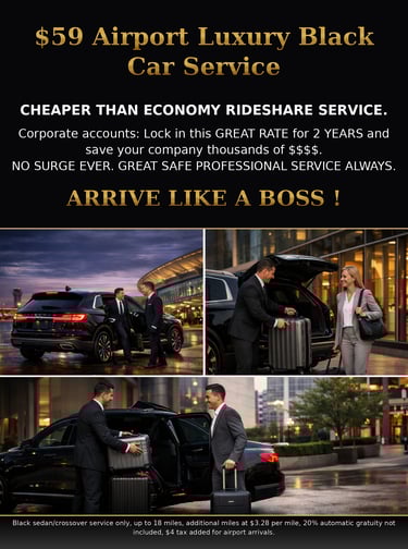 At RYSE, we understand that time is valuable. That’s why our Chicago black car service offers quick online booking, instant confirmations, and transparent flat-rate pricing with no surge pricing or dynamic pricing ever, we are about 1/3 the price or less of "you know who" during peak times, and about half the price all other times and the same price as their rideshare economy service, and our rates are flat and fixed, so no surprises on your bill. We’re proud to serve professionals, corporate clients, and visitors seeking dependable airport transfers or private black car service in and around Chicago.